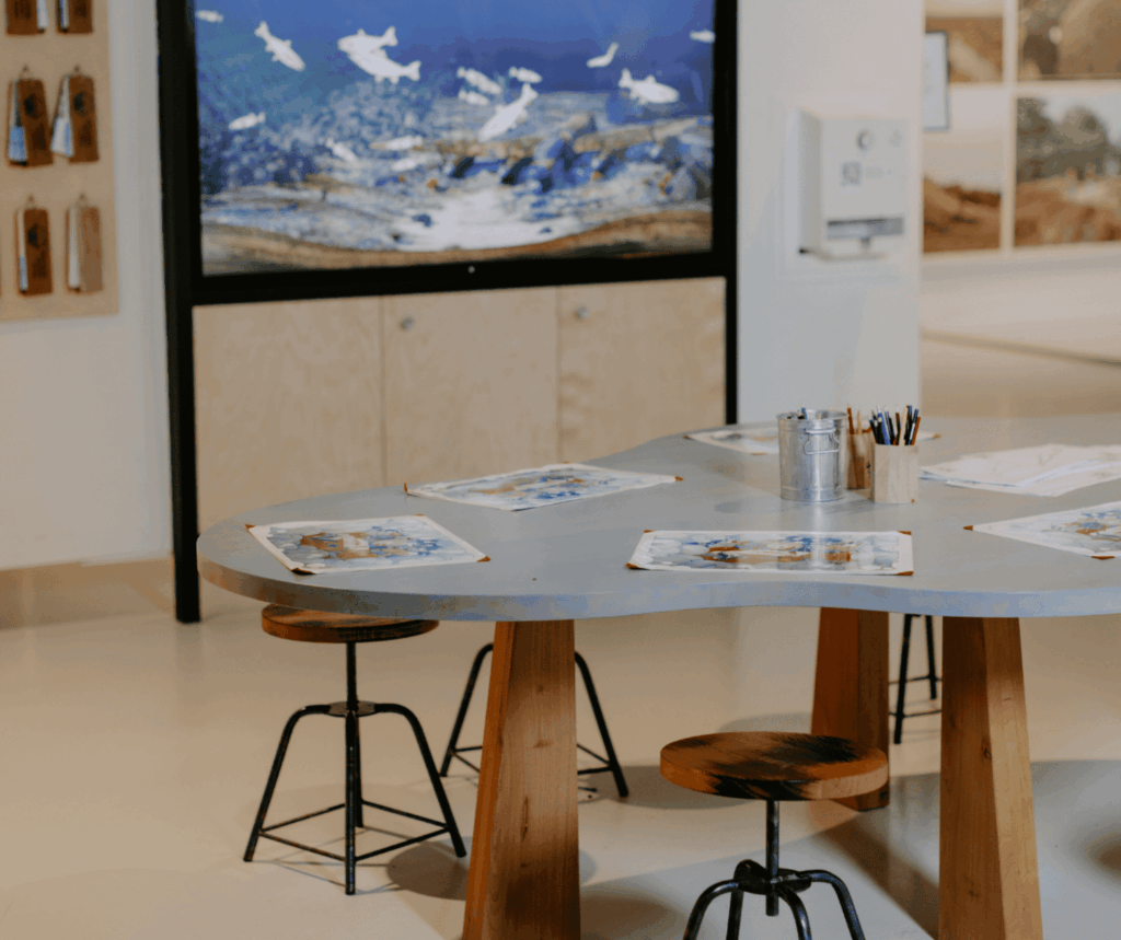 Haben die Kinder alle Bobby Fish gefunden und möchten das Erlebniszentrum noch einmal erkunden? Am großen Maltisch können sie zusammen mit Vorlagen von verschiedenen Meerestieren malen, die später im magischen Aquarium zum Leben erwachen.