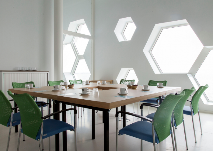 The Afsluitdijk Wadden Center has three themed rooms. The ‘Lelyzaal’ has a maximum capacity of 12 to 18 people. The Lorentz Room and Stevin Room have a maximum capacity of 24 to 30 people. Combined, these themed rooms have a maximum capacity of 32 to 60 people, depending on the desired layout.
