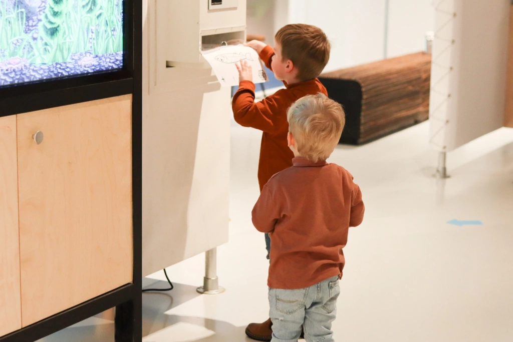 Have the children found all the Bobby Fish and would you like to take another tour of the experience centre? There is a large drawing table here for the little ones where they can colour in pictures, either together with other children or completely focused on their own. This gives you some time to explore the experience centre at your leisure.